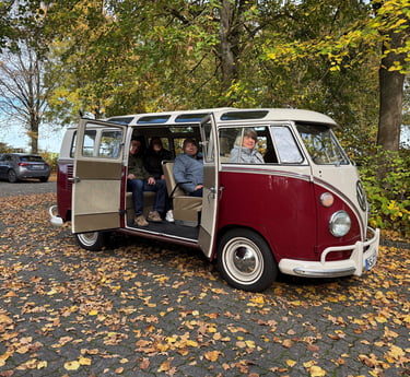 Steigen Sie ein, lehnen Sie sich zurück und erleben Sie gemeinsame Zeit auf eine ganz besondere Art und Weise. Unser T1 Bus bringt Sie entschleunigt zu Ihren Lieblingsorten - ob Familienausflug ins Grüne oder eine schöne Stadtrundfahrt. Kein Stress, kein Alltag - dafür lachende Menschen, gute Gespräche und Erinnernungen, die bleiben und Geschichte schreiben.